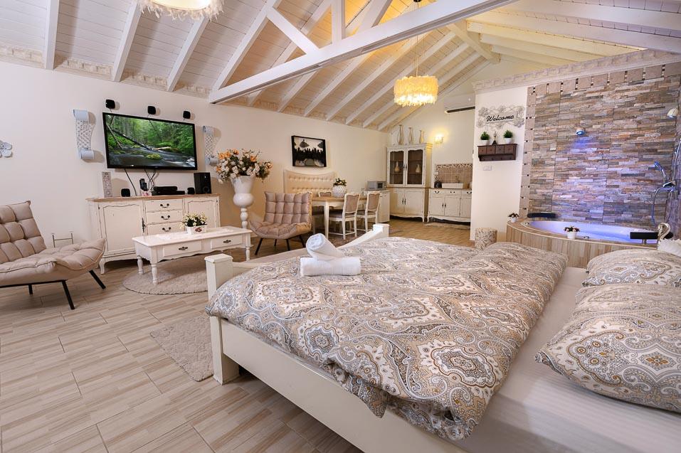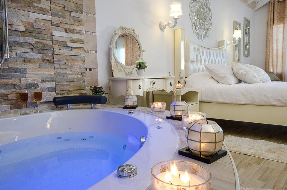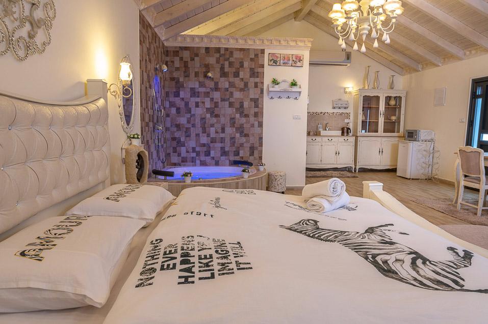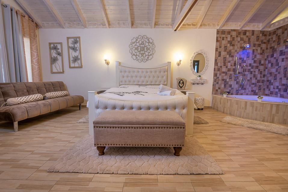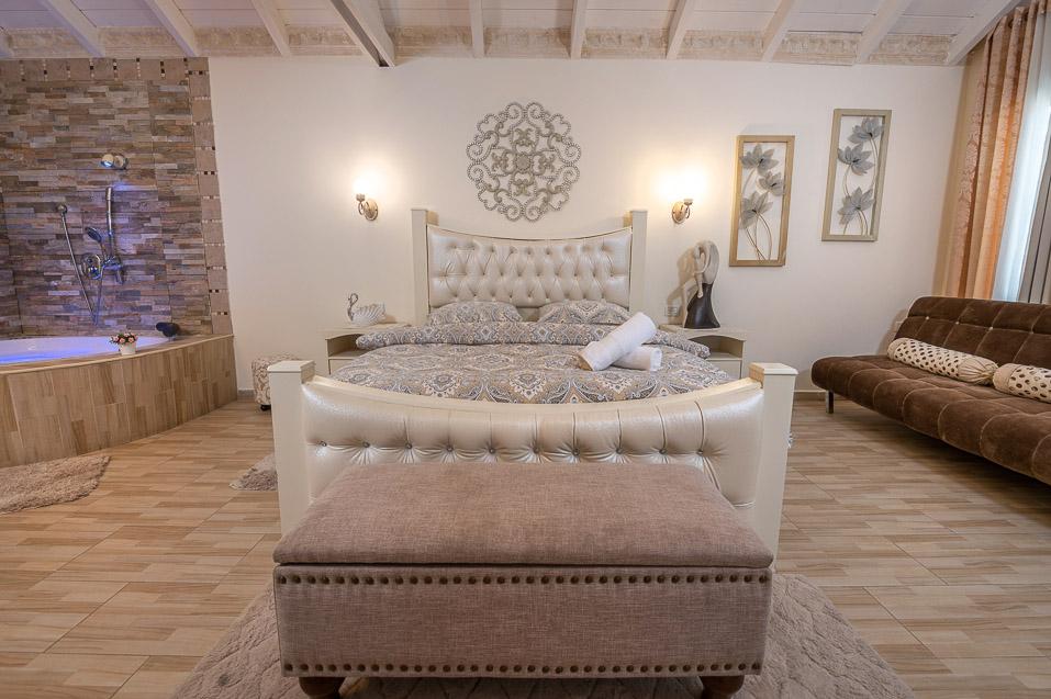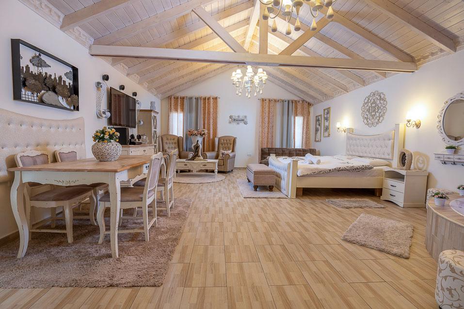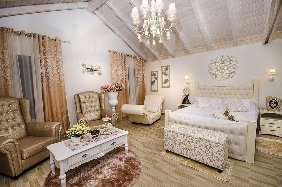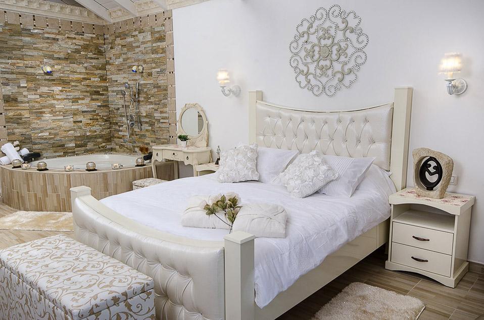 ראשית ישנן שתי הסוויטות הקסומות, אדל וירין, שתיהן בנויות עם תקרת עץ גבוהה וחלל פתוח ומרווח, שופע אור ומביט אל הנופים, מעוצבות בקפידה בעיצוב כפרי עתיק וגוונים רכים, הרמוניים ונעימים. הסוויטות מעניקות חוויה רומנטית ייחודית והתחושה כאן אינטימית, מזמינה ומושכת לצלול פנימה. הסוויטות מאובזרות בנדיבות וכוללות ג'קוזי זוגי מדליק הבנוי באבן וחולקות בריכה מפתה במתחם חוץ פרטי גדול ומזמין, בו לבריכה יש אפילו מערכת זרמי ג'טים.
