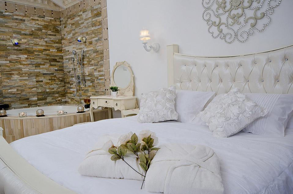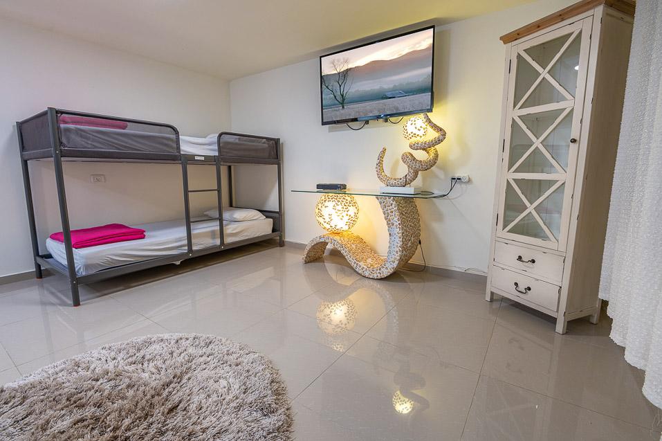 חלום בלבן מאפשרת לכם כמה אופציות של נופש - החל מחופשה זוגית רומנטית באחת הסוויטות דרך נופש משפחתי בוילת הבוטיק שכאן ועד חופשה לקבוצה גדולה, השוכרת יחד את המתחם כולו (כשזה מתאפשר, זאת חוויה בלתי נשכחת). עוד בטרם ניכנס אל הסוויטות, אנו מתרשמים לעומק מהמתחם המושקע - לוילה יש מתחם פרטי משלה כולל בריכה וכך גם לשתי הסוויטות. יש כאן את כל מה שצריך - פינות ישיבה בצל ופינות שיזוף או בטן גב בדגש על מקסימום נוחות, שולחנות משחק ושולחן ביליארד מקצועי תחת פרגולה מוצלת, שולחן חוץ חגיגי לסעודה בפינה משלו ואווירה נהדרת, של מרחב מטופח ומושקע המאפשר אירוח ברמה.