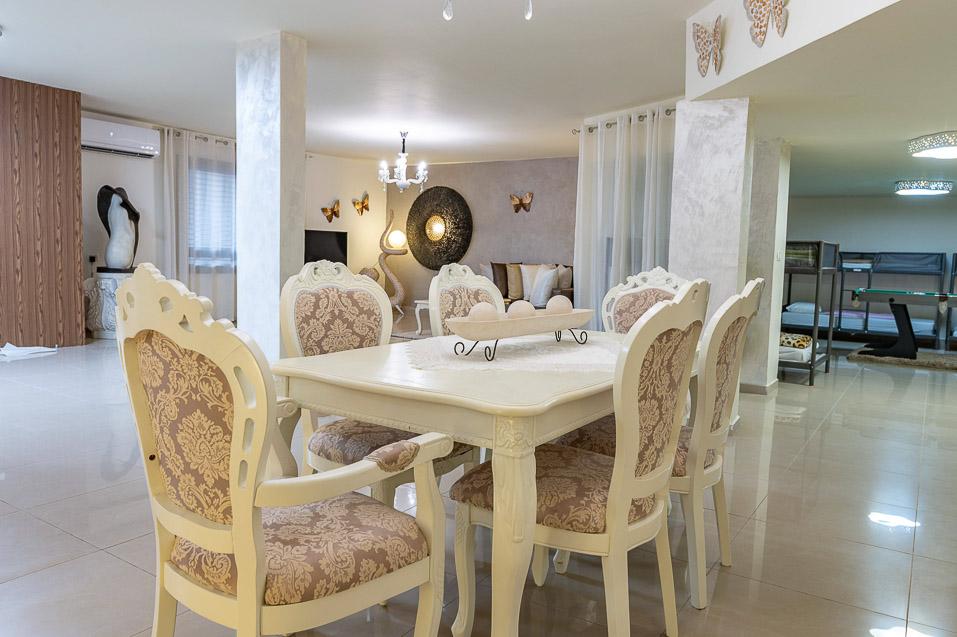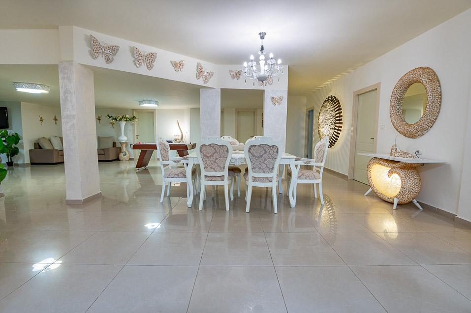 הוילה המדליקה של חלום בלבן באביבים נועדה לארח ולהאכיל בתנאים מושלמים משפחה או קבוצה גדולה ובדומה לסוויטות גם כאן העיצוב עושה שימוש בגווני פסטל רכים ונעימים, הריהוט בסגנון מלכותי עשיר, מרווח ומפנק, המרקמים נעימים, שולחן הסעודה ופינות האירוח חגיגיים במיוחד, חדרי הרחצה ממשיכים את הרמה הגבוהה והם מאובזרים בנדיבות ובוהקים מצחצוח, כמו המתחם כולו: זהו מקום מושלם בו כיף להישאר לאורך הנופש.