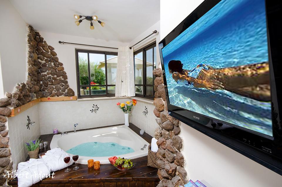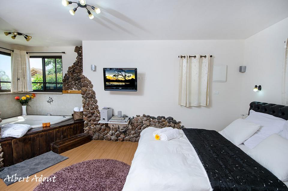 ענק לנוף הכנרת ומכילה ריהוט בגווני עץ טבעיים ושלל אלמנטים דקורטיביים נבחרים. תמצאו כאן מיטת אפריון מפוארת, סלון אירוח אלגנטי ומהודר,