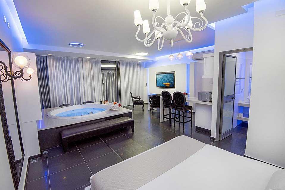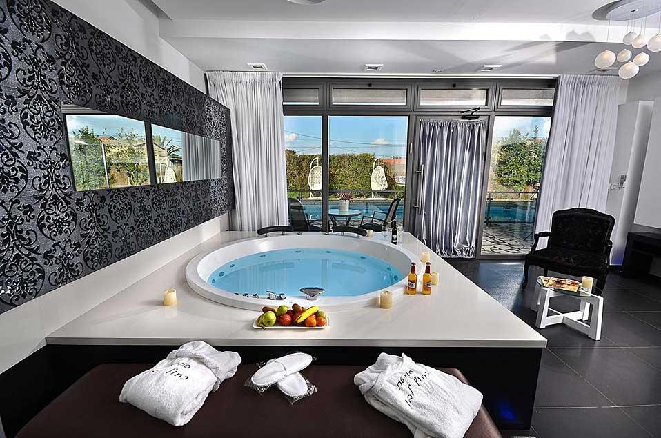 אווירת ערב בסוויטות כחול לבן, בריכה מחוממת ומקורה בחורף