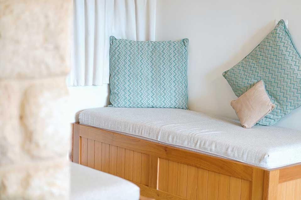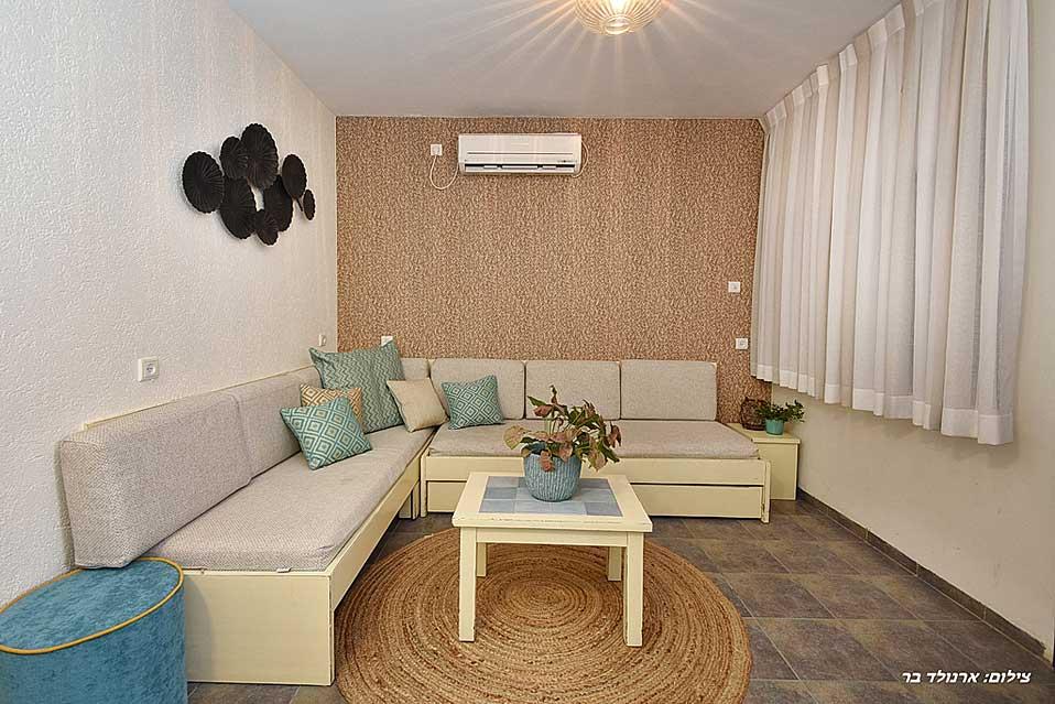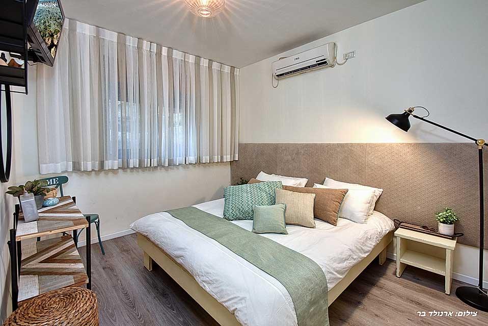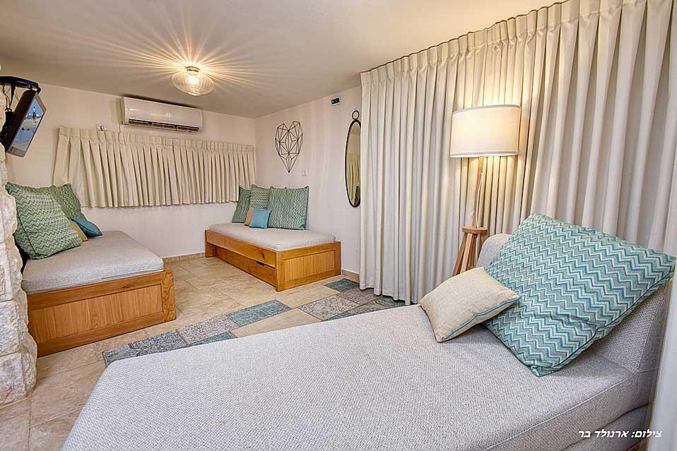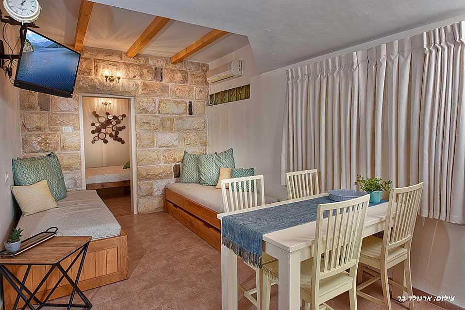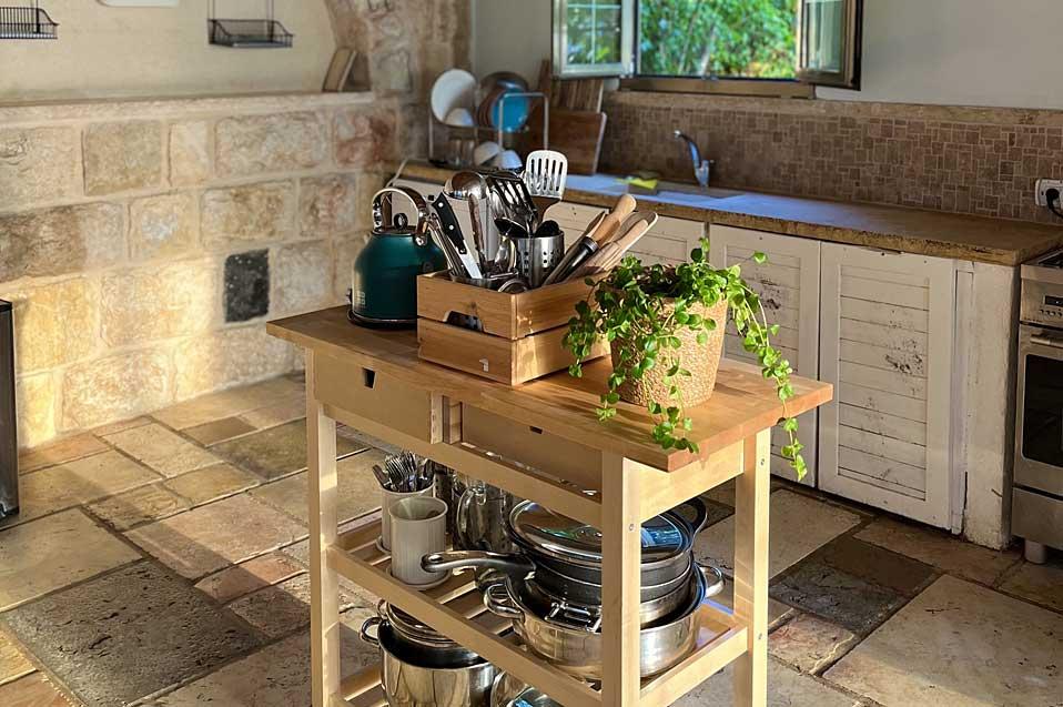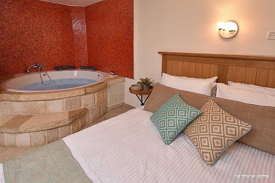 The estate offers six spacious and comfortable Jerusalem stone suites, designed in a luxurious country style and divided into two interconnected spaces - a living room and a bedroom. Each unit has a spacious private balcony that continues into a green courtyard with a well-tended garden. The suites are equally suitable for hosting couples, families or large groups at the request of the entire complex