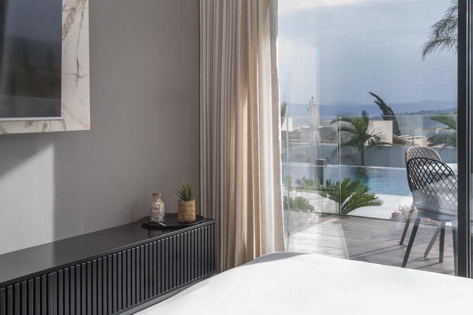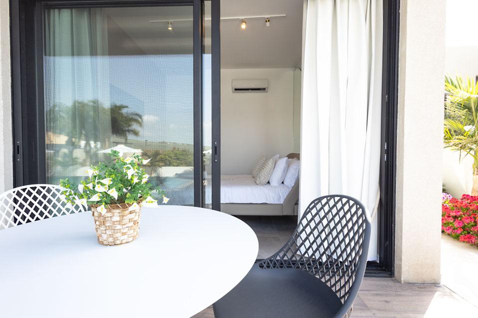 At Alaya Resort you can find three carefully designed suites, each of them offers a clean, meticulous and elegant design, modern fittings and special treats that give the feeling of a personal tribute corner and are equipped with everything required for a pleasant and romantic vacation, with an emphasis on comfort and aesthetics and in an atmosphere of warmth and luxury. Each suite opens onto a balcony