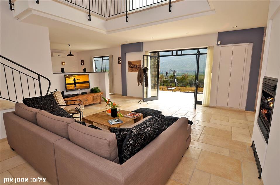 A luxurious villa with 6 bedrooms, located at Migdal . Near the shores of the Kinneret. A minute drive fromthe city of Tiberias. The villa is situated in a natural landscaped garden environment and overlooks a panoramic view towards the Sea of Galilee and Mount Arbel. The villa occupies an area of 1.5 acres and the parking is fenced, ensuring full privacy. The villa is designed in a classic-elegant style with rustic touch and is designed for a solid family holiday. The 300-meter villa is built on two spacious, air-conditioned floors and has a large, built-in entrance and covered with garden furniture.