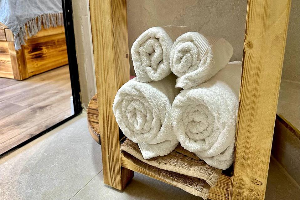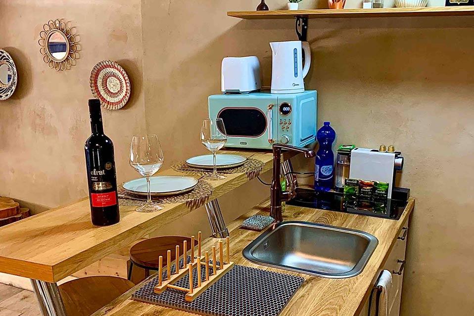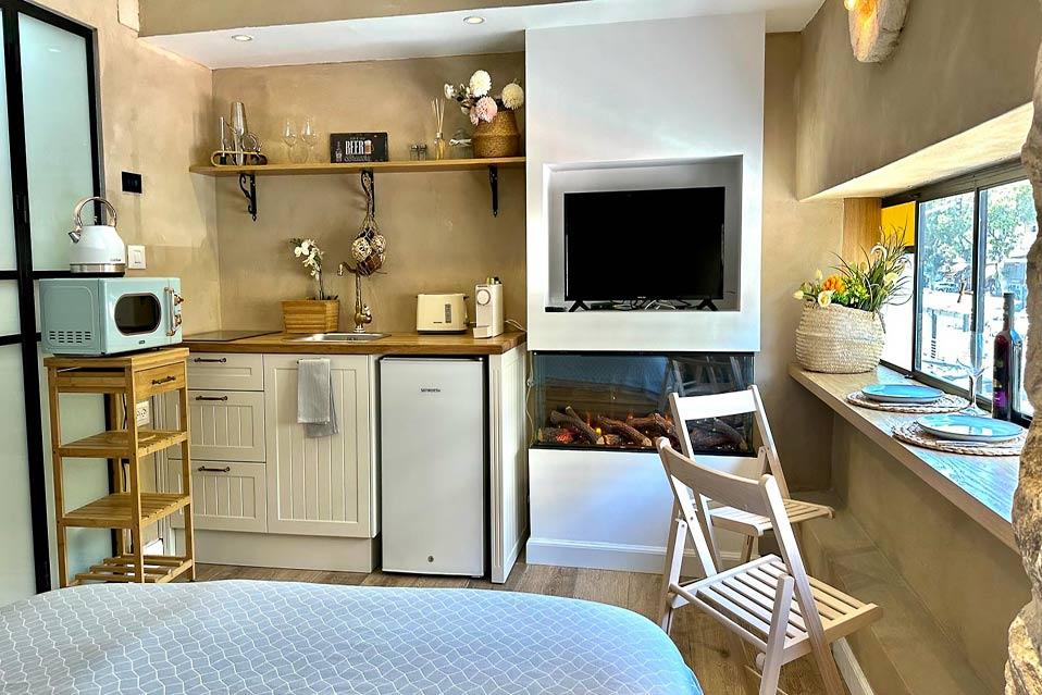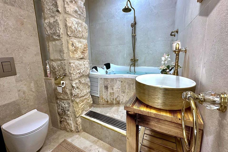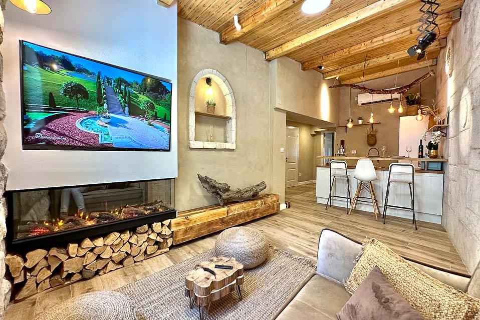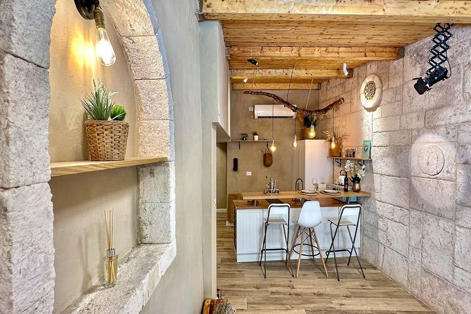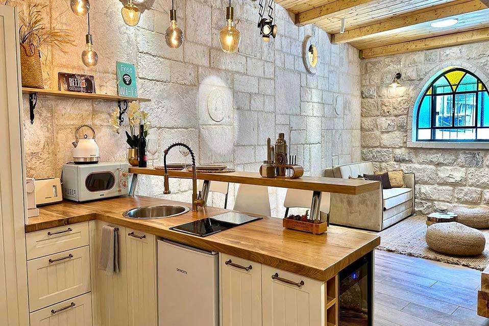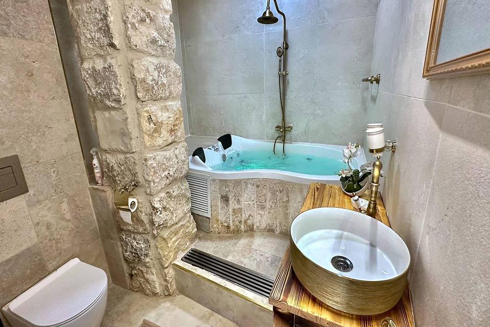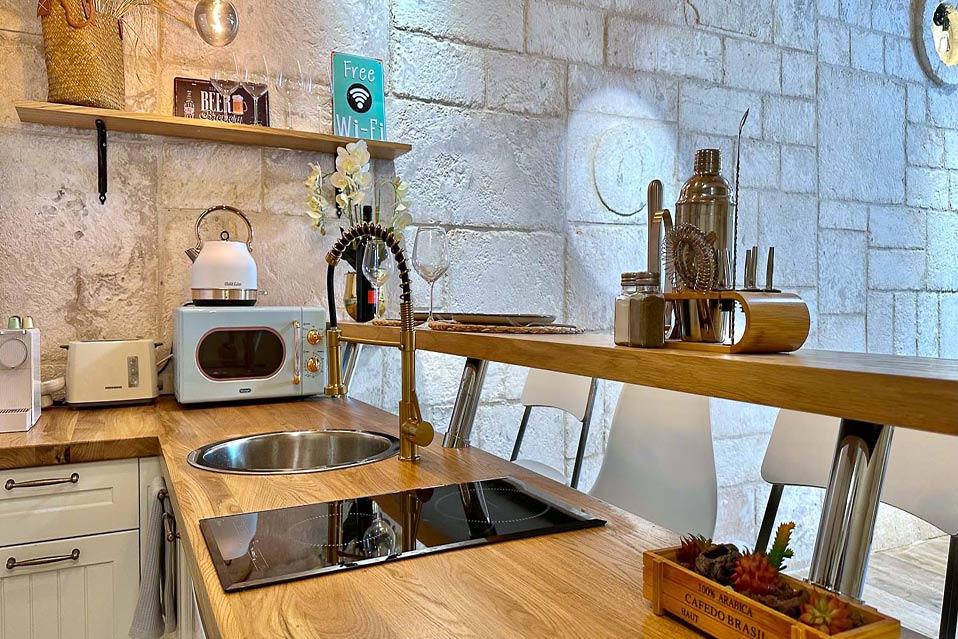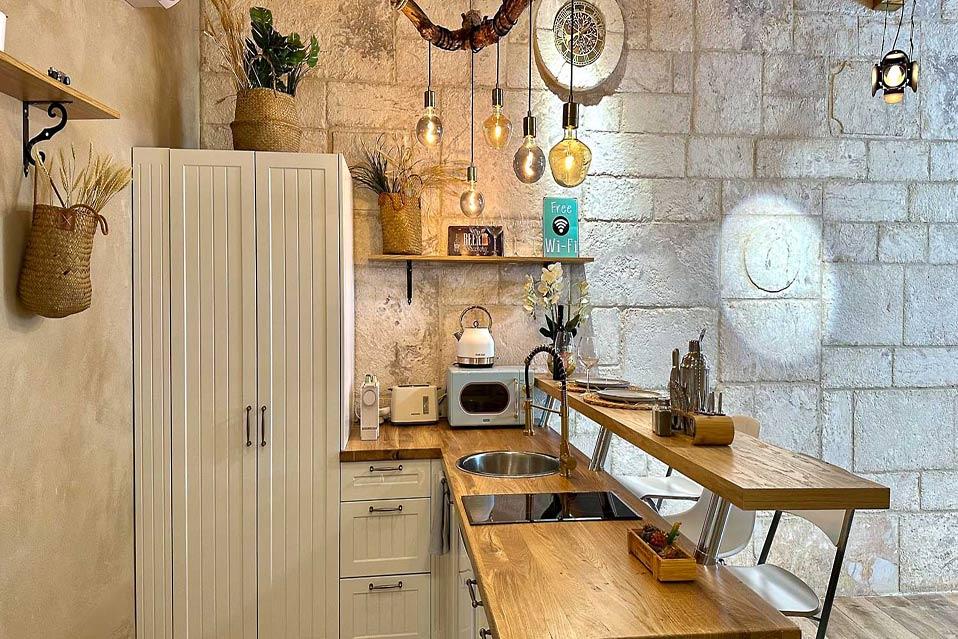 All suites are equipped with air conditioning, high-speed Wi-Fi, designed kitchens, original stone finishes, ancient arches, and warm lighting – creating the feeling of staying inside a historic structure while enjoying modern comfort.
