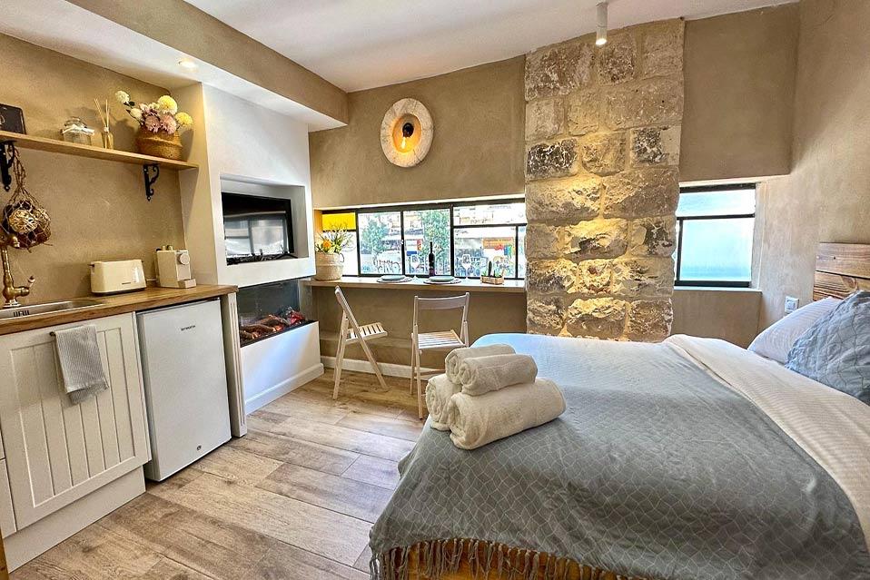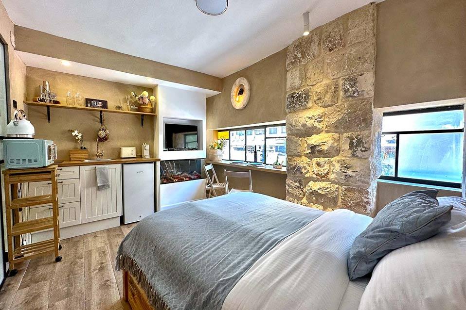 In the heart of Haifa’s Turkish Market, in an area that feels like a living meeting point between past and present, lies Bankers Boutique – an exceptional boutique suites complex housed in a historic stone building over 150 years old. From the very first moment, the history is felt, yet the experience is shaped by contemporary design, high-end amenities, and a vibrant urban atmosphere.