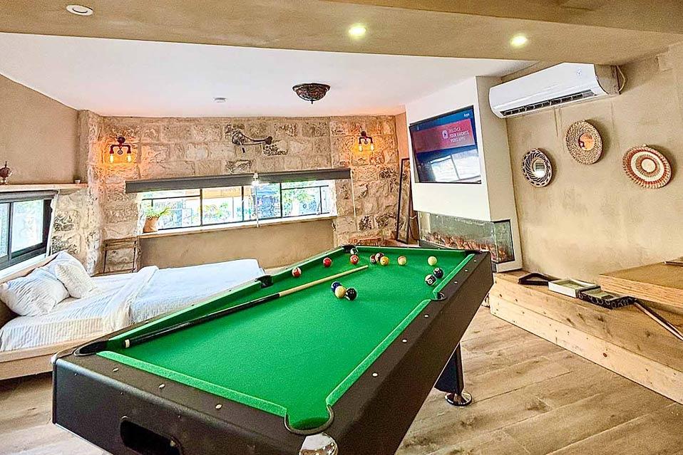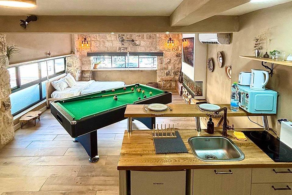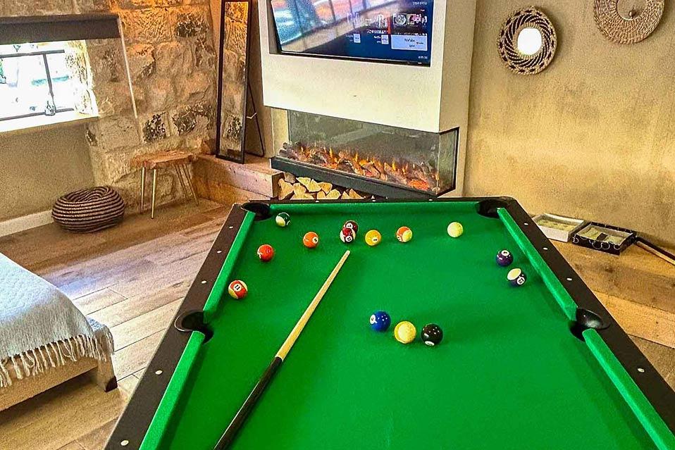 An impressive open space, a pool table, a fireplace, carefully designed ambient lighting, and precise styling. An ideal choice for couples seeking a young, urban, and stylish experience with a unique twist.