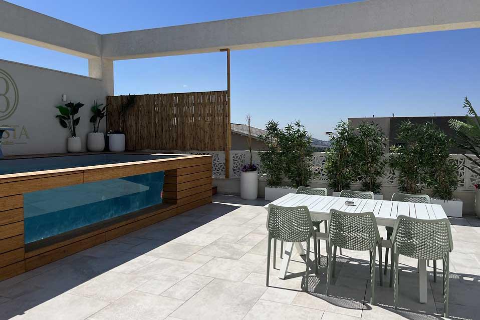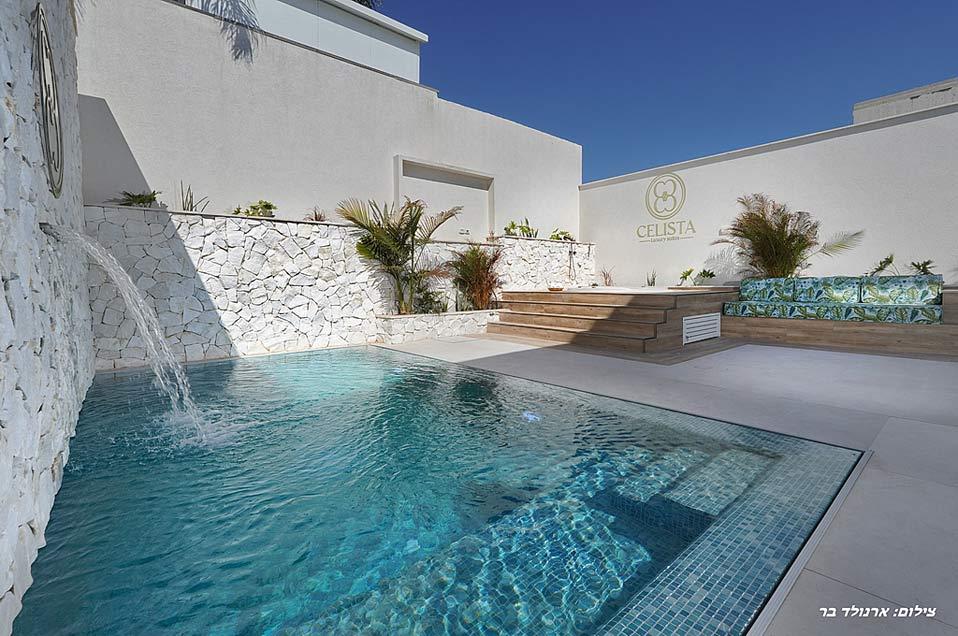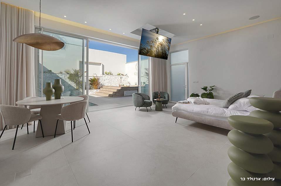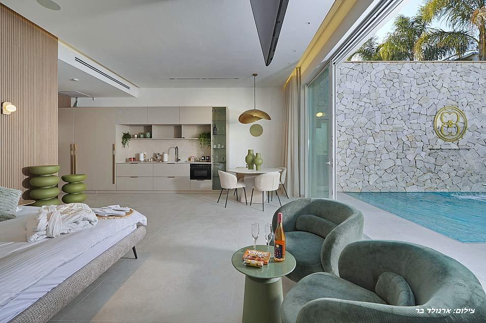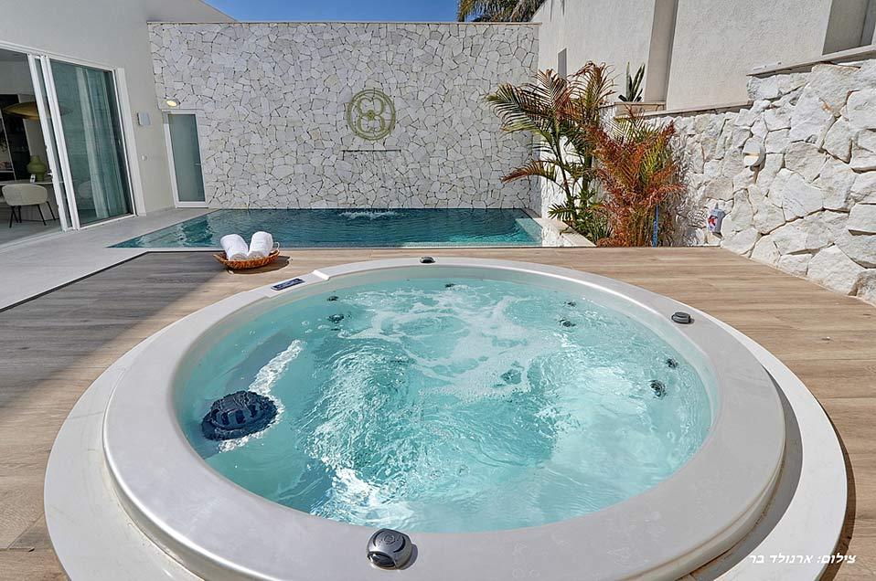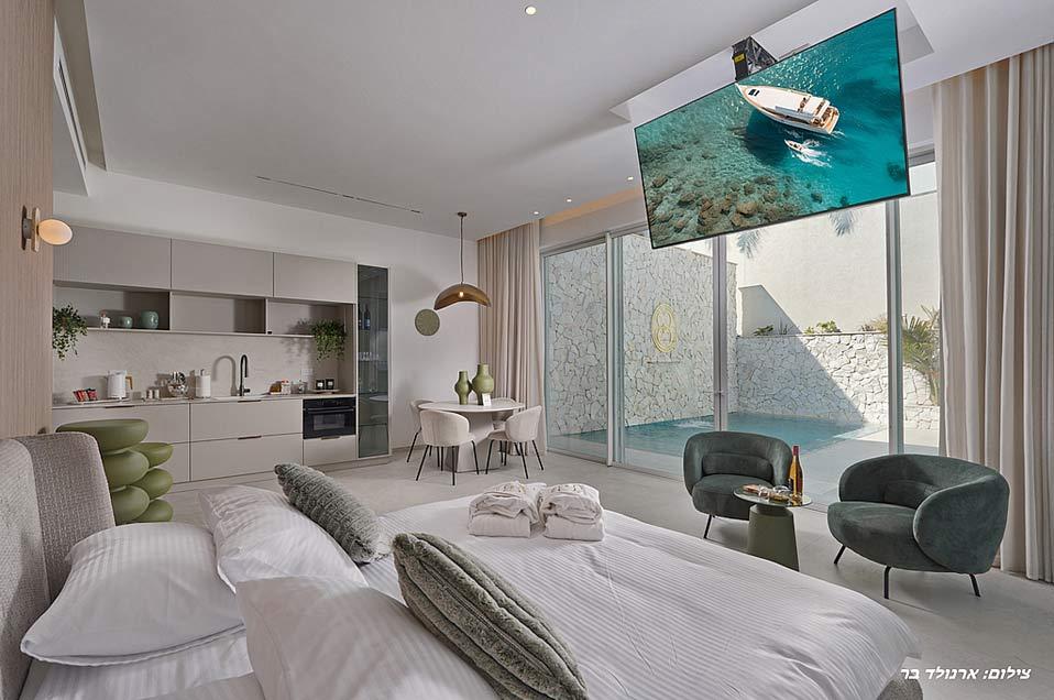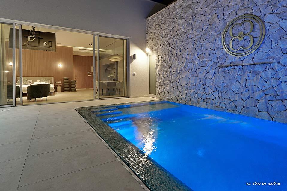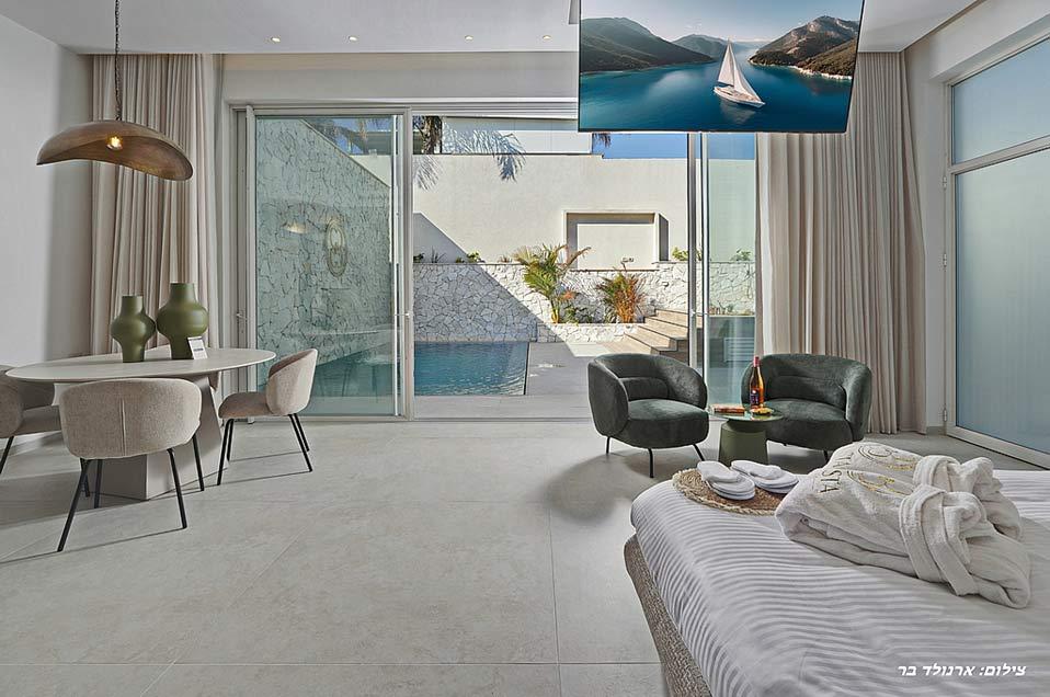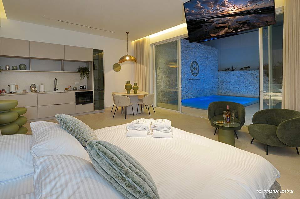The private and closed complex includes two luxurious suites, each equipped with a private heated pool and a luxurious spa jacuzzi. The suites are suitable for couples looking for a romantic vacation, but also for a family interested in a high-level vacation.