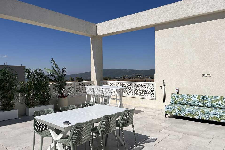 The suites are located in Moshav Dalton, a sought-after tourist site, near spectacular hiking trails, with breathtaking views and even a chance of snow in winter. In addition, the suites can be connected via a connecting door in the courtyard, making the place also suitable for an intimate family vacation or for couples of friends.