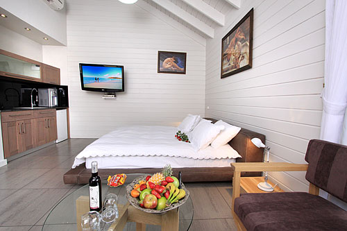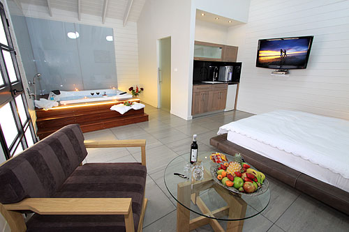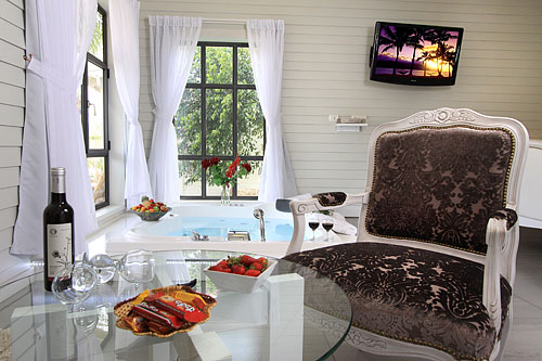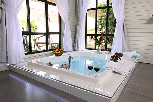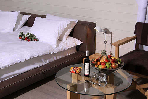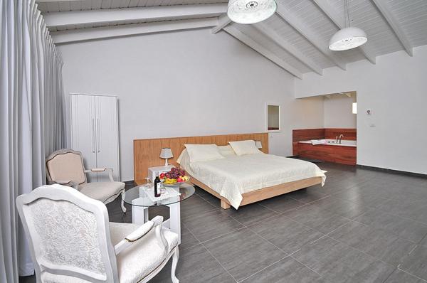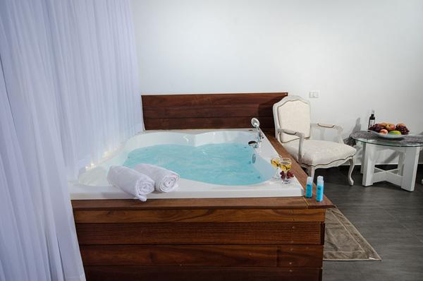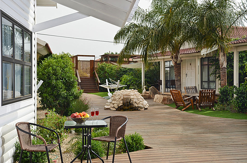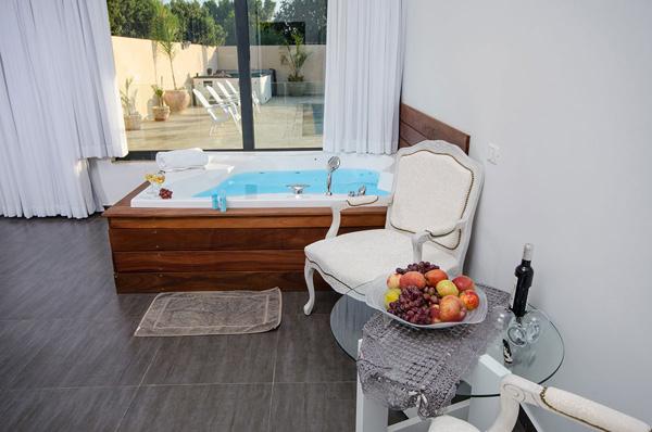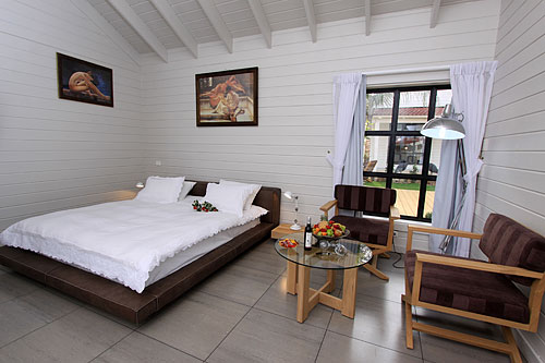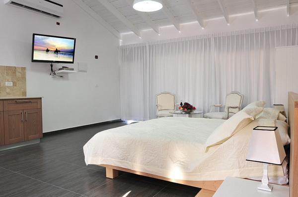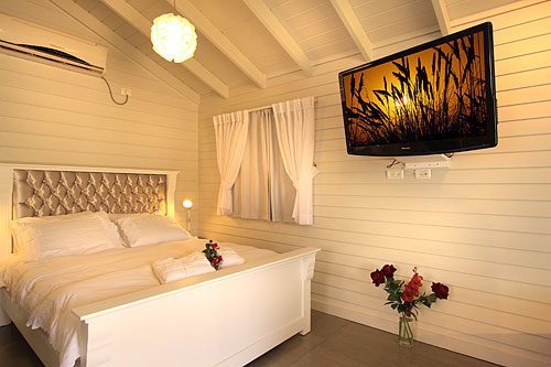 In the mansion - 12 accommodation units: 4 built suites and 8 wooden cabins (two "Erez" cabins accessible to the handicapped) designed in a light palette and in a relaxed and embracing style. Each unit has a huge double Jacuzzi, a state-of-the-art television screen, an oversized double bed and an elegant and comfortable living room. Between the suites are graceful thin paths for a delightful walk, surrounded by rich vegetation.