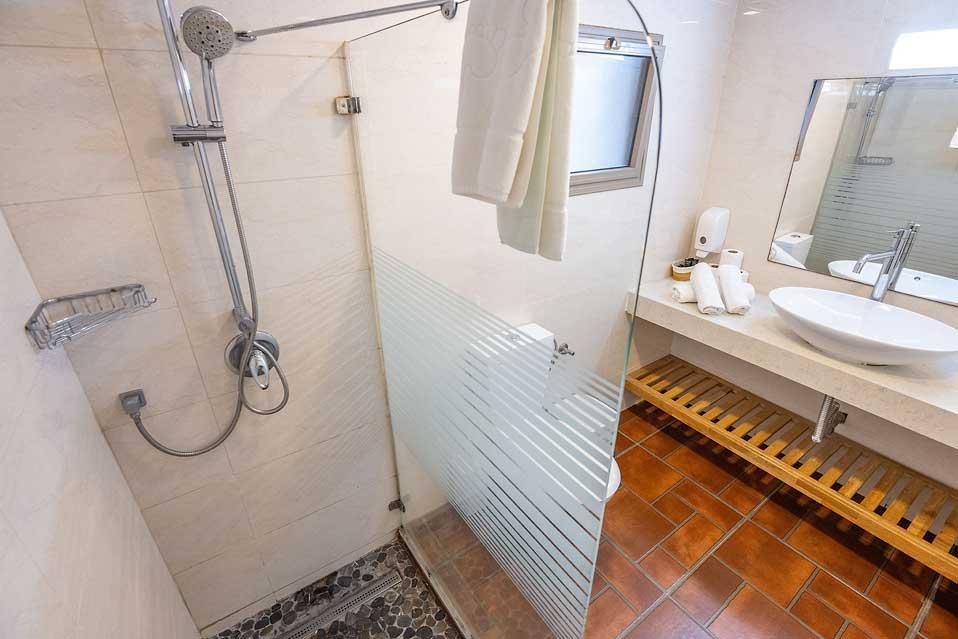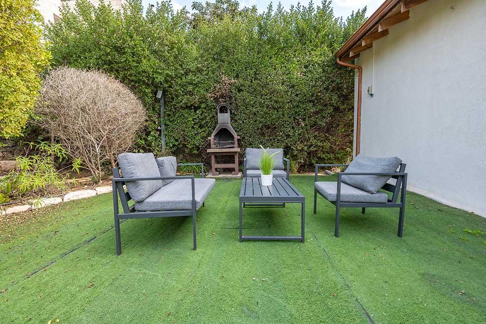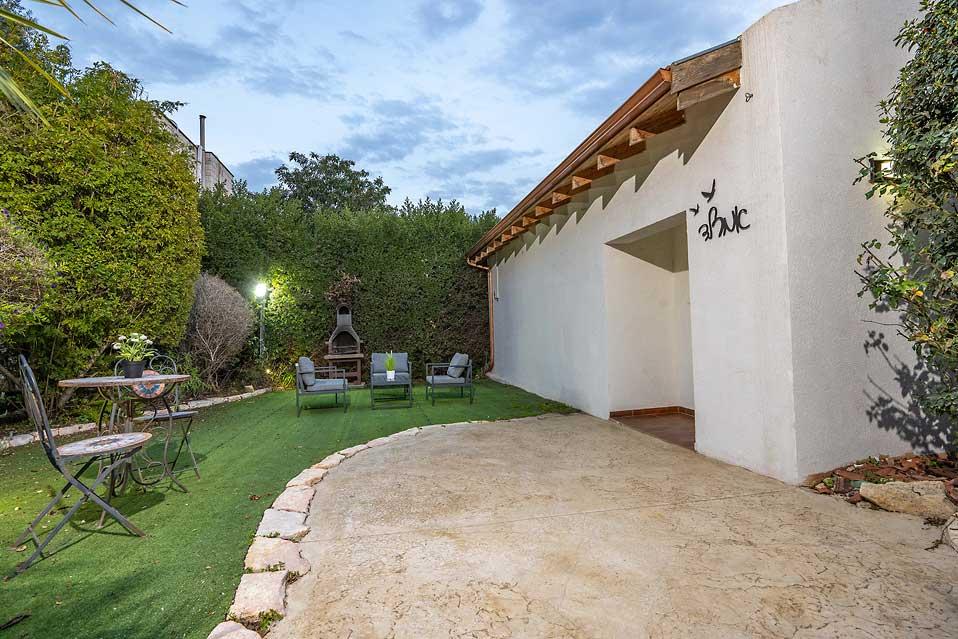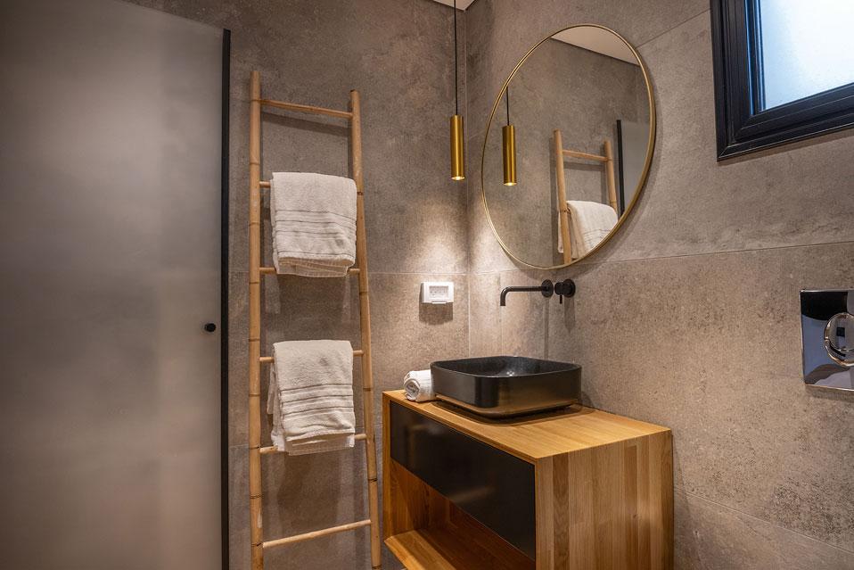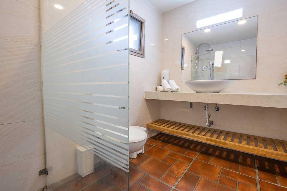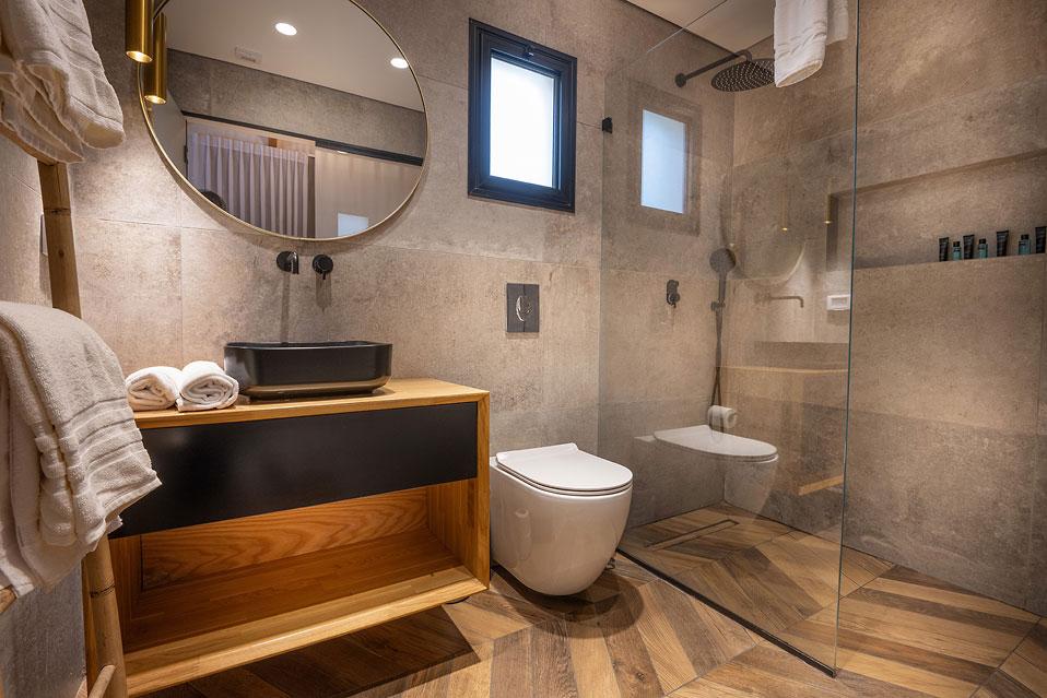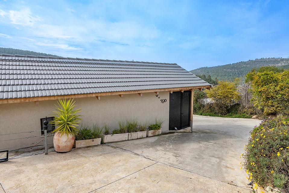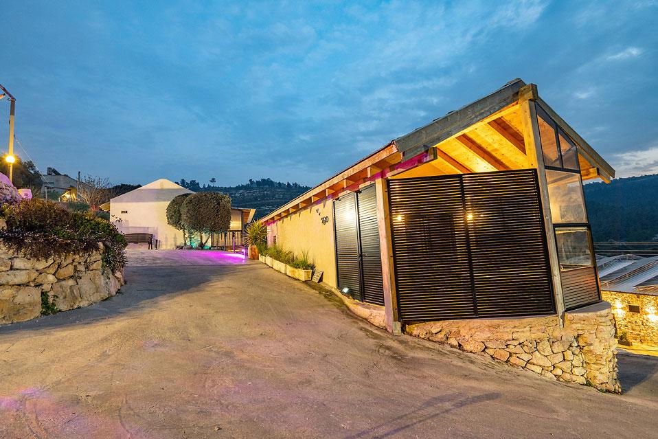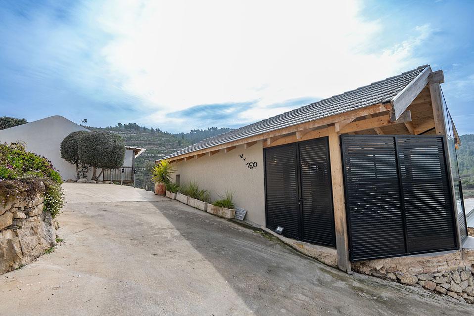 Large family suite. The entrance to the suite is through an access road and a private yard with a sitting area and a built-in barbecue facility. The suite is spacious with huge windows overlooking the view. The suite space is equipped with a double bed, a large TV screen, a pull-out couch for children, a kitchenette, a bathroom and a wooden balcony along the length of the suite with a huge spa jacuzzi, a bar table, coffee and a pampering hammock.