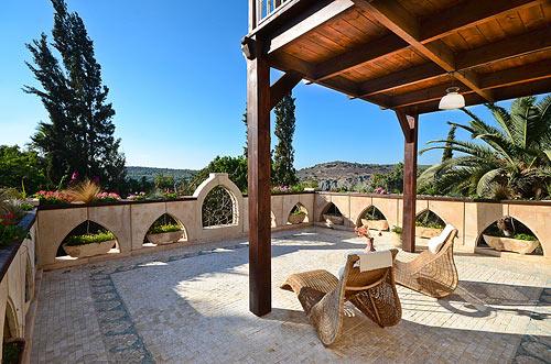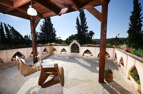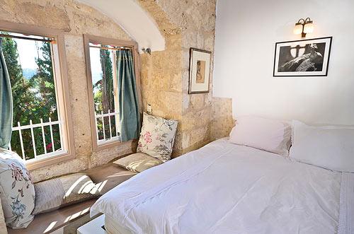A beautiful suite, one of a kind, on the top floor of a restored Byzantine fortress that shares a hall and a view balcony with the eastern suite. Inside the suite - a gallery floor with a private balcony overlooking a spectacular view, custom-made boutique furniture, original art pictures, a Byzantine-style bathtub and a host of unique decoration details.