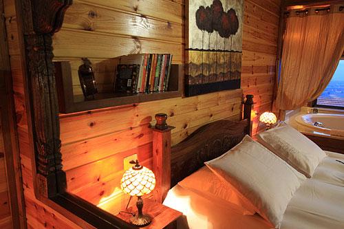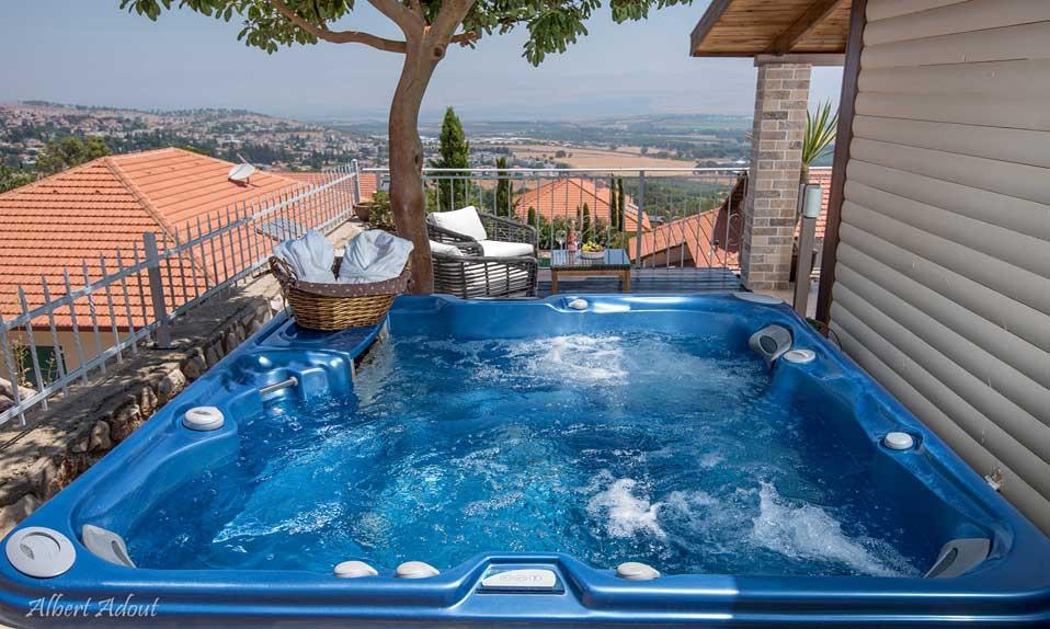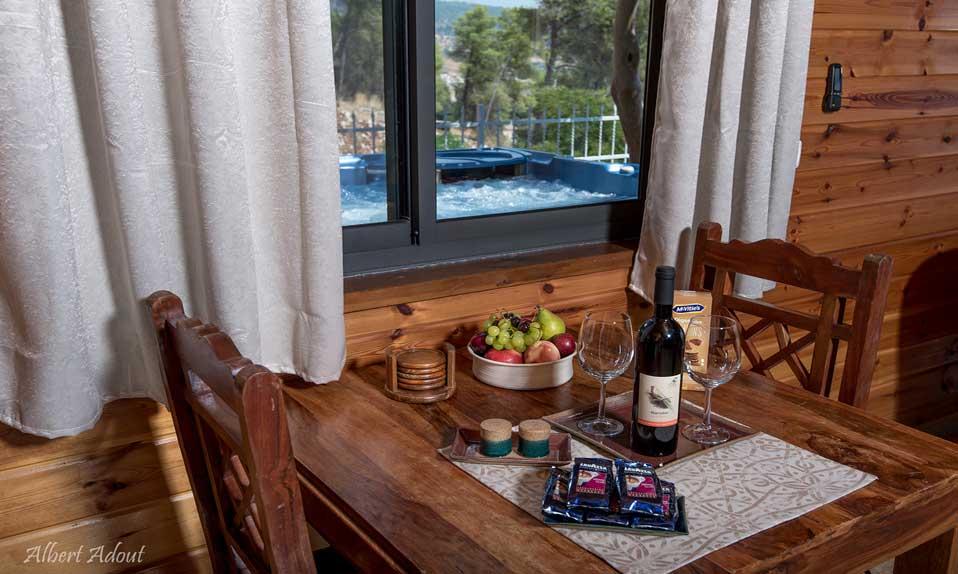 The cabins are designed in a relaxed and cozy atmosphere and are designed to host a peaceful and intimate encounter with a rare and beautiful landscape, which connects the mountains of the Galilee, the Golan, the Hermon and the Hula Valley to an endless panorama line spread out to the distant horizon. The wide glass door of each hut opens onto a wide private balcony, which is adjacent to a well-tended yard, which is covered with vegetation and blooms to the view. The balcony of the spa "gazebo" is equipped with a Jacuzzi and a large spa that stands in complete privacy with a cylindrical view.