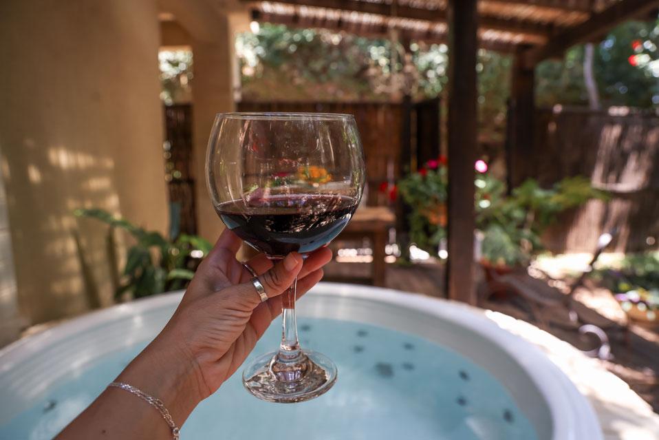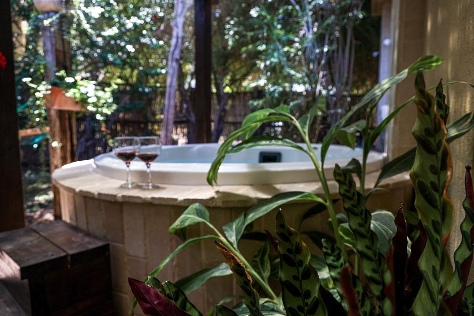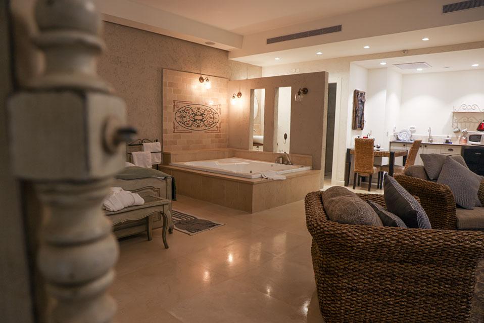 В двух западных сьютах джакузи находится внутри сьюта. В двух восточных сьютах есть уличное джакузи дополнительно к частному бассейну.