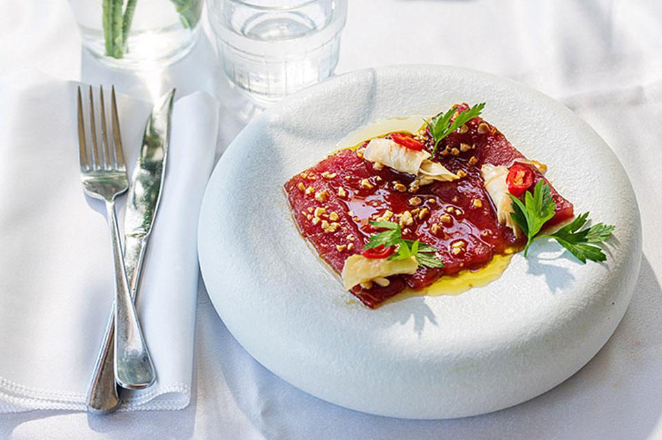 מסעדה ים תיכונית יוקרתית. חוויה קולינרית אל מול שובר הגלים העתיק של נמל קיסריה. בשרים, דגים, קינוחים ואלכוהול משובח.