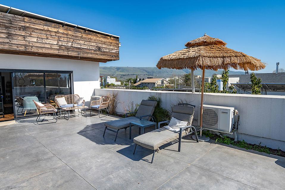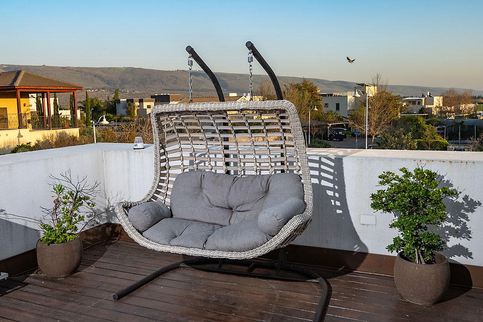 Открытая площадка Shirat Hanahal включает в себя огромный огороженный бассейн, шезлонги, зонтик, обеденный стол, большую лужайку, игровые и развлекательные столы и большую летнюю кухню, все на свежем воздухе и в пасторальной атмосфере Галилеи.