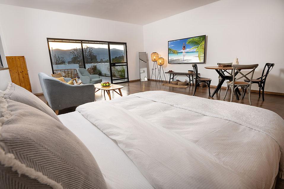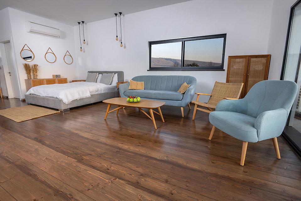 Вилла Shirat HaNahal включает в себя пять просторных и спроектированных спален, каждая из которых предлагает высокий уровень комфорта и чувство уединения. Рядом с виллой есть еще один люкс как часть виллы с отдельным входом, включающий гостиную, полностью оборудованную кухню, балкон с приятным видом с зоной отдыха и спа-джакузи. Люкс подходит для пары или семьи.