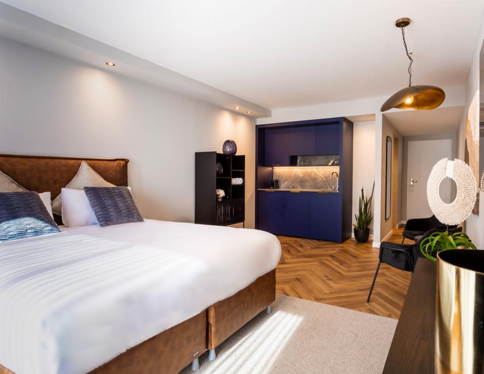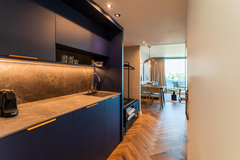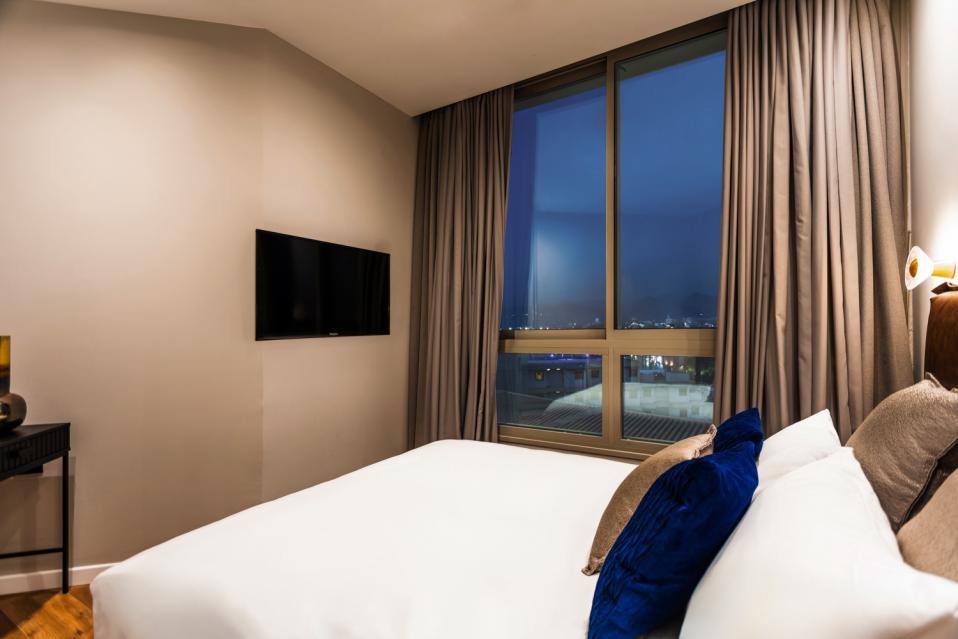 Во всех апартаментах есть широкая кровать (Queen size), мини-кухня (холодильник, микроволновка, чайник, кофемашина Nespresso, посуда), ванная комната с душем и феном, смарт-ТВ, высокоскоростной Wi-Fi и кондиционер.