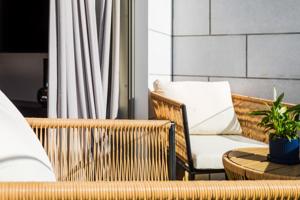 Апартаменты с двумя спальнями, балконом и видом на море.