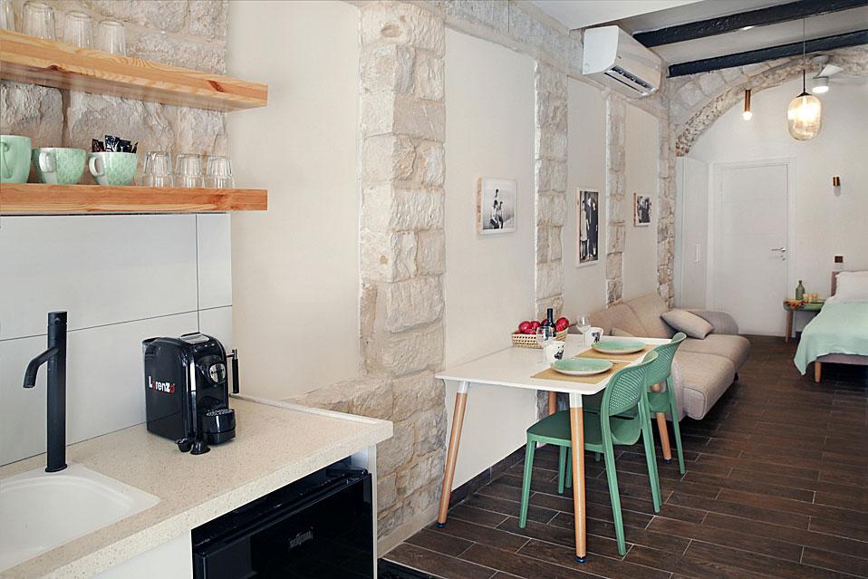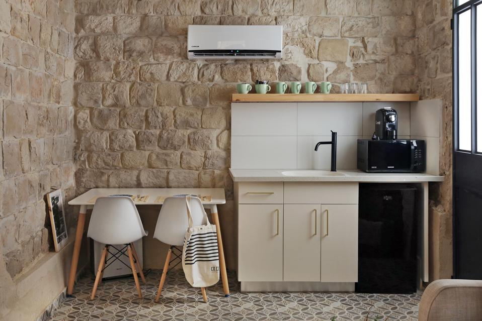Как уже упоминалось, люксы расположены в старинном отреставрированном здании с каменными стенами, высокими потолками и традиционными плиточными вставками. Дизайн люксов выполнен в современном, комфортном и функциональном стиле.