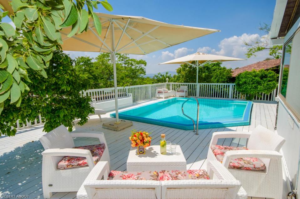 Четыре просторных деревянных люкса расположены на расстоянии друг от друга, хорошо изолированы деревьями и разнообразными садовыми участками. В каждом люксе есть патио, с которого можно спустится в частный двор с деревьями, цветочными клумбами, обеденной зоной и гостиными уголками.