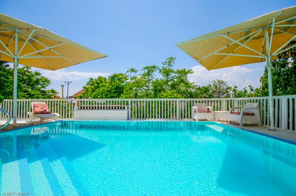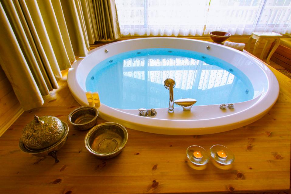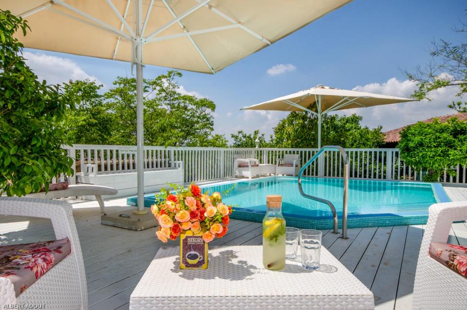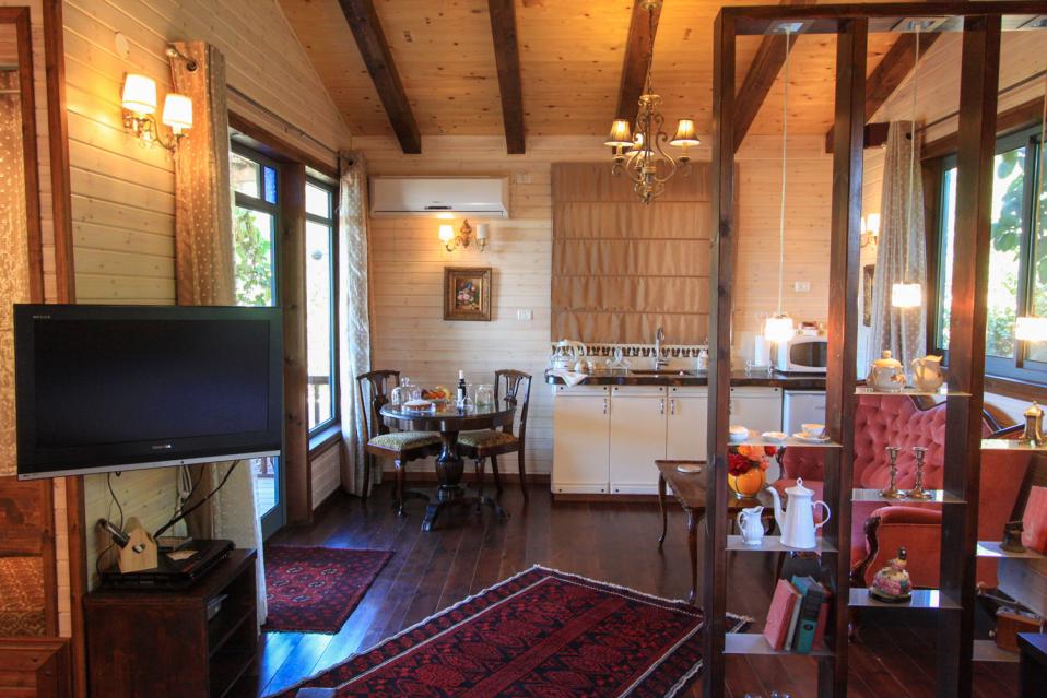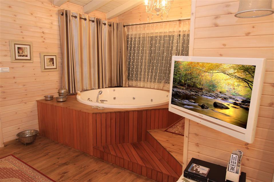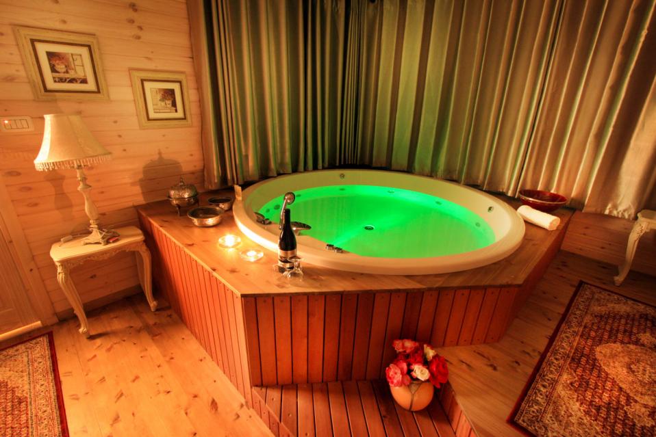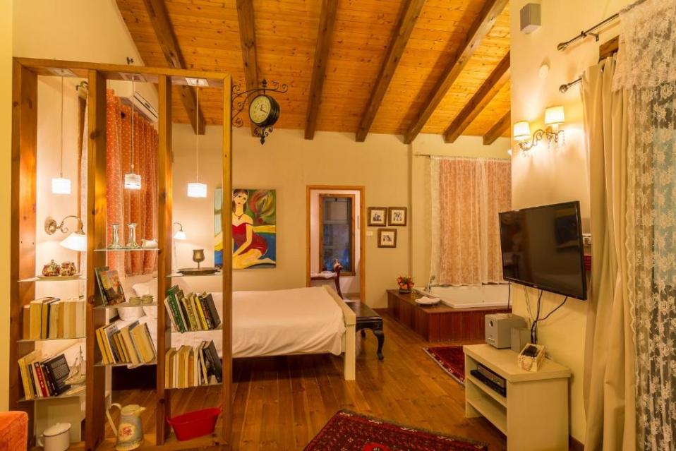 В каждом из люксов вы найдете большой джакузи, спальную кровать с ортопедическим матрасом, телевизор с кинотеатром, подключенным к каналам YES, обеденную зону и журнальный столик. В мини-кухне есть микроволновая печь, холодильник, чайник и кофеварка эспрессо, а в просторной ванной комнате - скамейка рядом с тропическим душем.