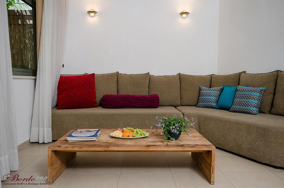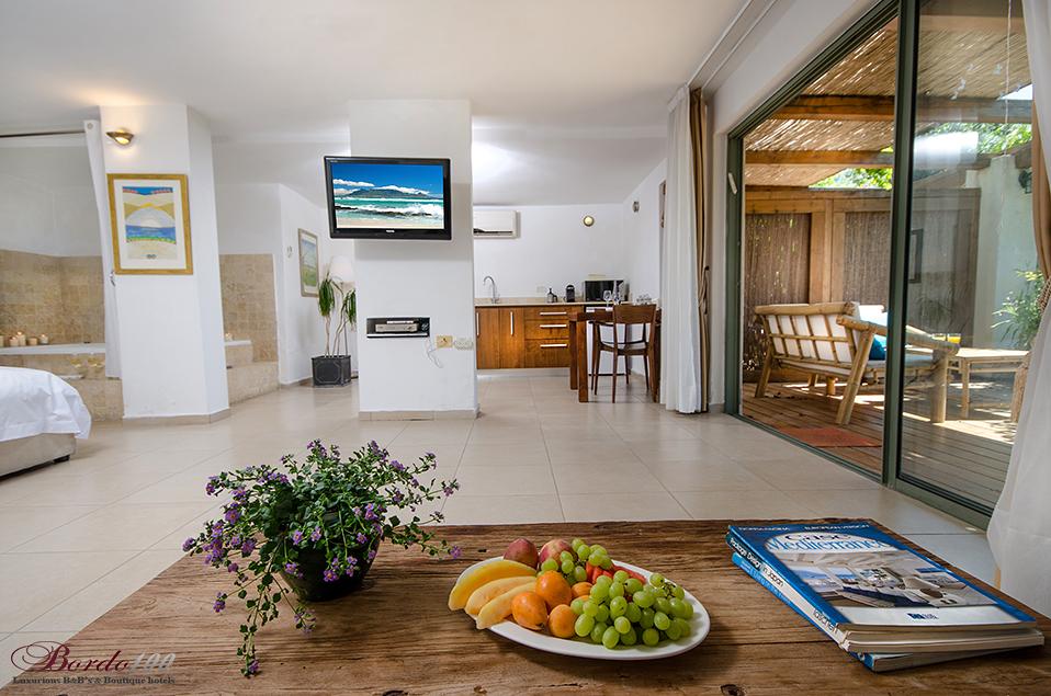 2 סוויטות בסגנון מודרני מינימליסטי בפאתי כפר האמנים המפורסם עין הוד. במקום, מתחם גן רחב ידיים, השופע מדשאות, עצי זית ונוי, ערוגות פרחים ושלל צמחיה ארץ ישראלית. על שטח הגן פזורות פינות ישיבה אינטימיות ומרפסות נוף קסומות, כולן צופות אל הנוף הפנוראמי של הים והרי הכרמל. בתוך חללי הסוויטות, הבנויות עם קיר חלונות ענק אל הנוף, ימצאו האורחים ג'קוזי זוגי גדול במיוחד, מיטות זוגיות גדולות במיוחד עם מזרן אורטופדי הולנדיה, סלון אירוח עם ספה רחבה ופינת אוכל אינטימית בסמוך למטבחון. לכל סוויטה צמודה מרפסת דק מרווחת ומקורה עם סלון אירוח חיצוני.